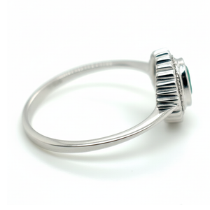 Crafted in solid 9ct white gold, the cool tone of the metal perfectly complements the vivid green emerald and the bright sparkle of the diamonds. With a ring size K and offered in pre-owned condition, this ring has been carefully maintained and remains in excellent wearable condition, making it ideal for everyday elegance or special occasions.