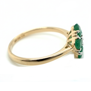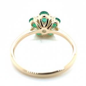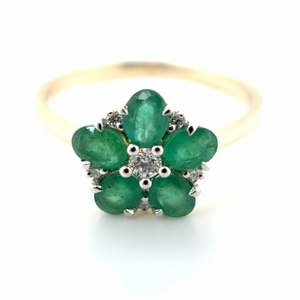 9ct Yellow Gold Emerald And Diamond Flower Ring