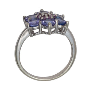 A 9ct white gold tanzanite and pink diamond ring.