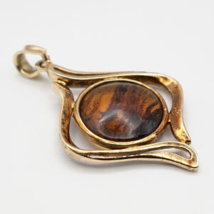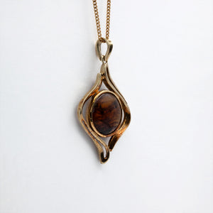 A golden artistic, and bespoke decorative frame encloses a natural piece of amber.