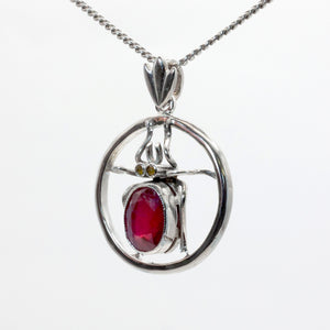 A large oval cut ruby measuring 8 x 6 mm’s is rub over set in to the abdomen of the beetle.