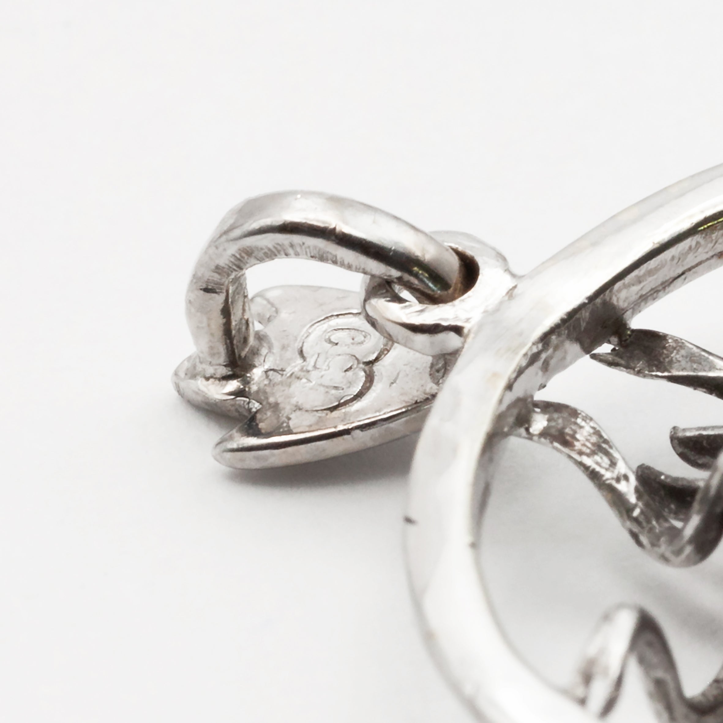 The white gold beetle has been soldered into the circular pendant.