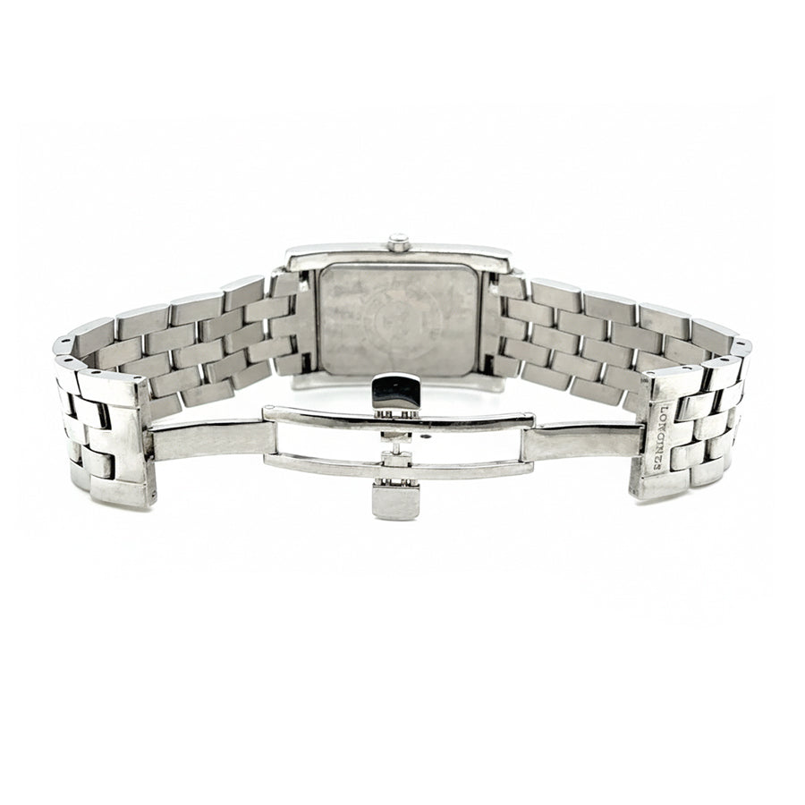 This stylish Ladies Longines DolceVita Watch features a bold orange dial set within an elegant 16×39mm rectangular stainless steel case. The sleek silver bracelet beautifully complements the vibrant dial, creating a modern yet timeless look. Powered by a reliable automatic movement, this pre-owned piece captures the refined sophistication Longines is known for.