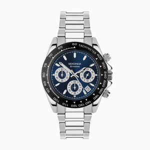 The Sekonda Circuit Chronograph Men’s Watch features a 39mm silver alloy case, dark blue sunray dial, and stainless steel bracelet. Sporty yet refined, it offers chronograph timing, a date display, and 50-metre water resistance for everyday versatility.