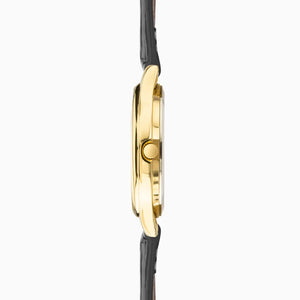 The Sekonda Easy Reader Ladies Watch features a gold-tone alloy case, a crisp white dial with day and date display, and a black croco-grain leather strap. A timeless and practical watch designed for everyday elegance.
