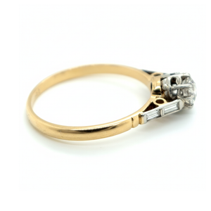 This stunning 18ct Yellow and White Gold Diamond Solitaire Ring is a perfect blend of classic design and contemporary style. Crafted in 18ct yellow gold, the ring features a round brilliant cut diamond as the centrepiece, showcasing exceptional sparkle and clarity.