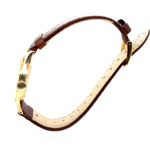 Comfortable brown leather strap that pairs beautifully with the gold tones