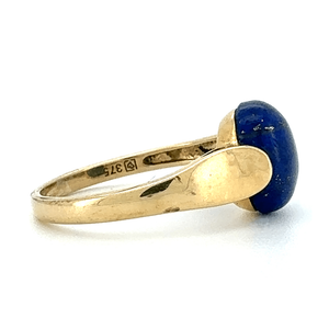 A bold and contemporary tension-set ring crafted in 9ct yellow gold, featuring a striking natural lapis stone in a sleek oval cut.