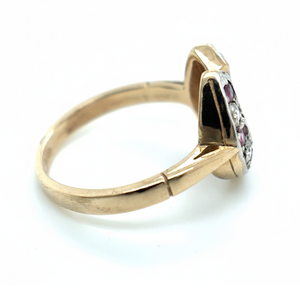 This delightful 9ct Yellow Gold Ruby and Diamond Horseshoe Ring is a beautiful blend of symbolism and fine craftsmanship. Designed in a classic horseshoe shape, the ring represents luck and protection, making it both meaningful and stylish.
