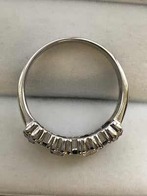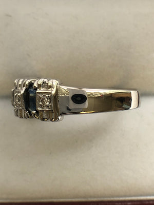 A 14ct white gold sapphire and diamond ring.