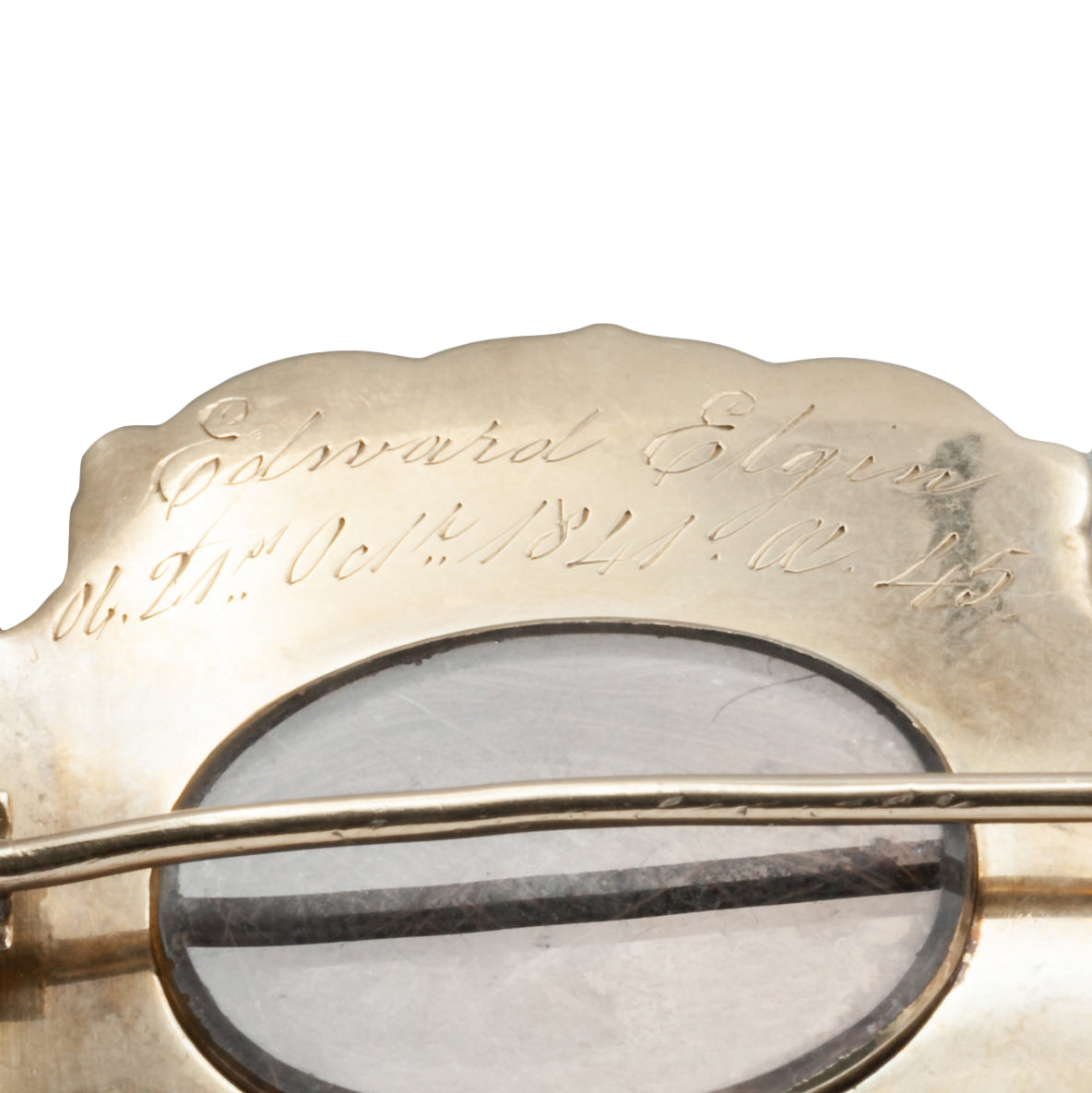 At the center of the reverse of the brooch is a glass window through which the keepsake of the dearly beloveds hair can be viewed. A secret known only to the wearer.